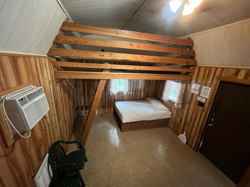 | Each one room cabin is equipped with electricity, heat, AC and 2 twin beds & 1 double bed to sleep four people. Picnic table, water and fire pit are outside. There is no bathroom or kitchen. Linens are not supplied. No Pets are allowed inside cabin. |